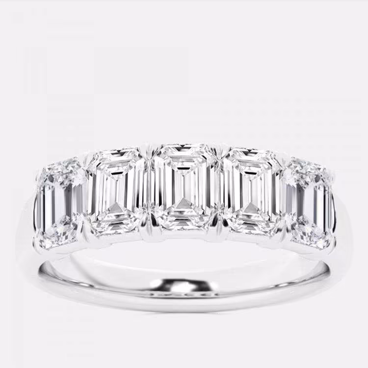 خاتم ذكرى زمرد مختبر ألماس خمس أحجار من الذهب الأبيض عيار 14 حجم الولايات المتحدة 7 (3 قيراط)