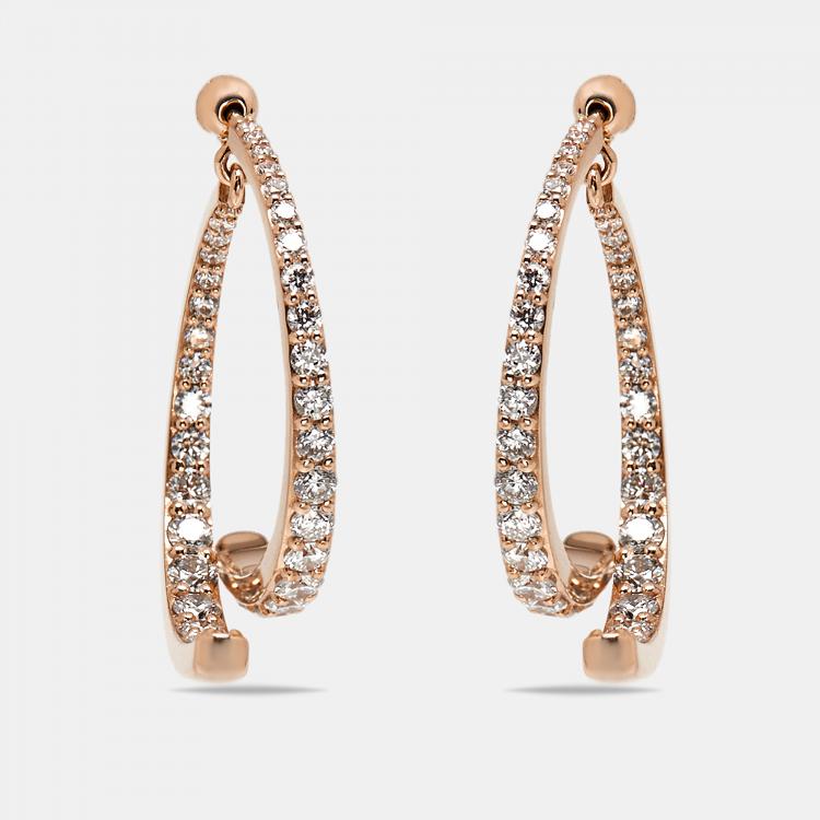 Pre Owned أقراط ذهب وردي عيار 18 ألماس مزروع مختبرياً دائري 2.1 قيراط