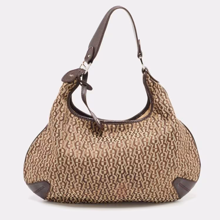 Pre Owned حقيبة هوبو إيغنر قماش مميز بني/بيج �وجلد