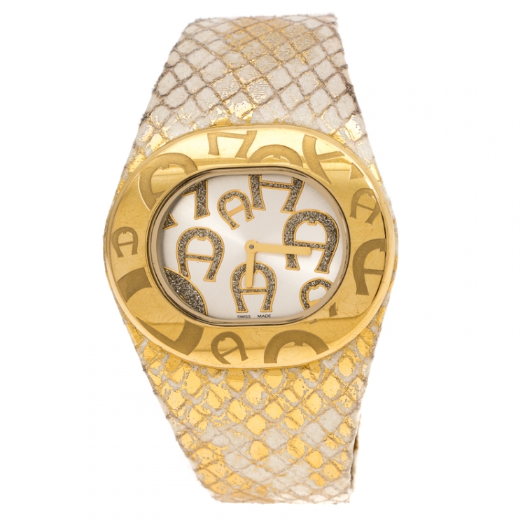 ساعة يد نسائية أيغنر رافيلو دوي A21000 ستانلس ستيل مطلي ذهب فضي 43 مم