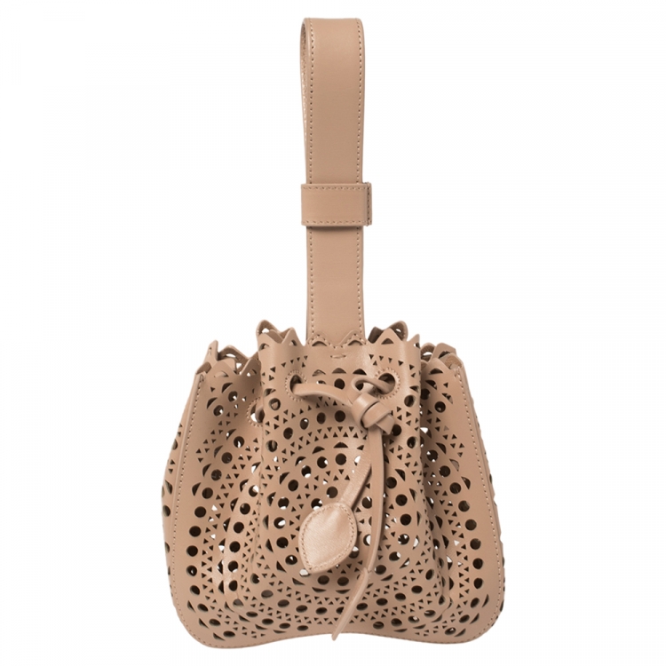 Alaia Vienne Old Rose Leather Laser Cut Bucket Bag
