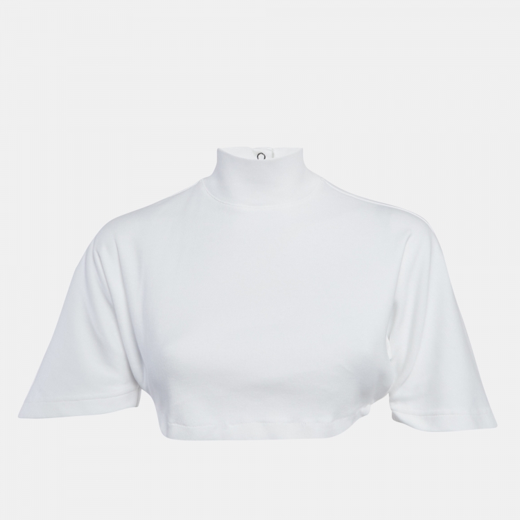 Pre Owned قميص علايا جيرسي أبيض قصير بياقة بولو مقاس صغير جداً (إكس سمول)