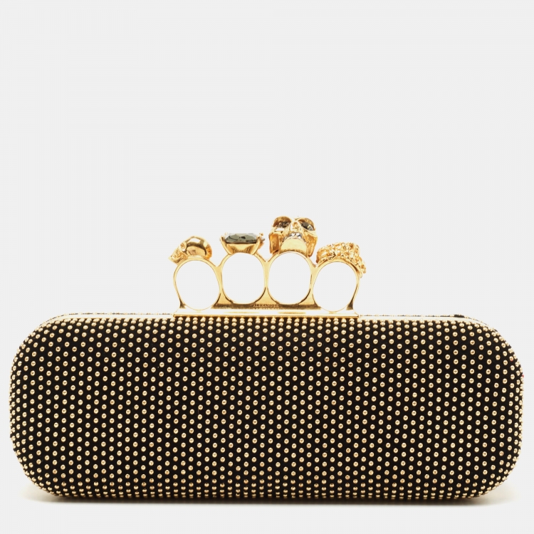 Pre Owned حقيبة كلتش أليكساندر مكوين ناكل بوكس بجمجمة مرصعة سويدي سوداء