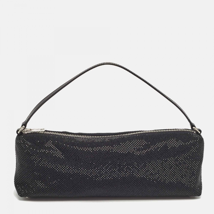 Pre Owned Alexander Wang Black Canvas and Leather Crystals Heiress Flex Bag