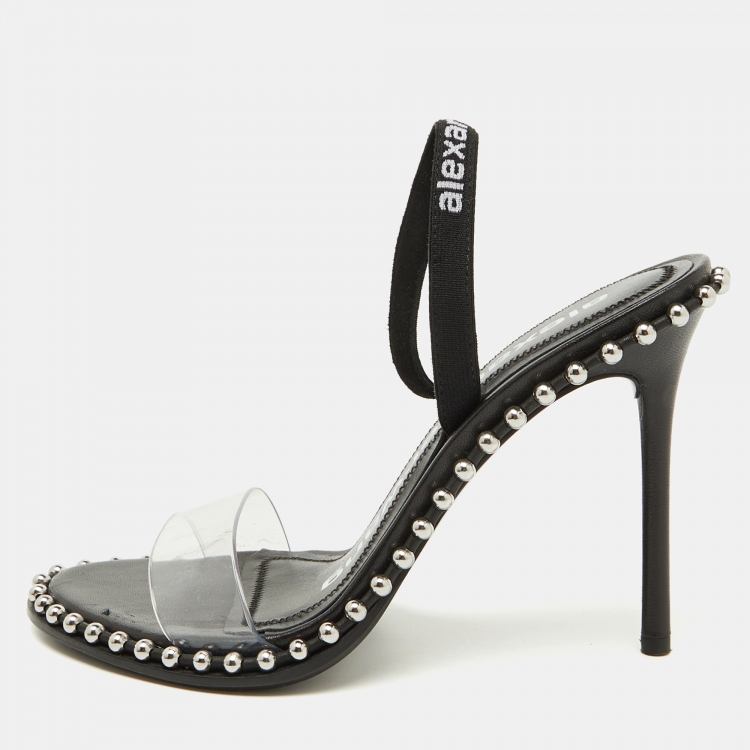 Pre Owned Alexander Wang Black PVC Studded Slingback Nova Sandals Size 35
