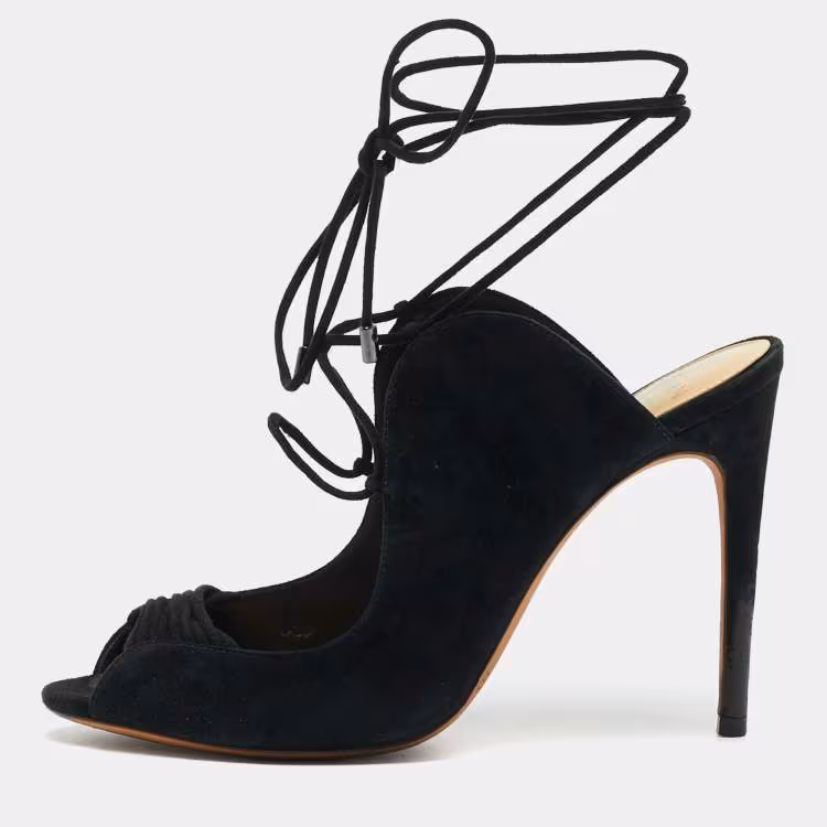 مملوكة مسبقًا صندل ألكسندر بيرمان مربوط مقدمة مفتوحة سويد أسود مقاس 38