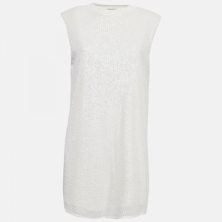 Pre Owned All Saints White Sequin and Knit Juela Mini Dress M