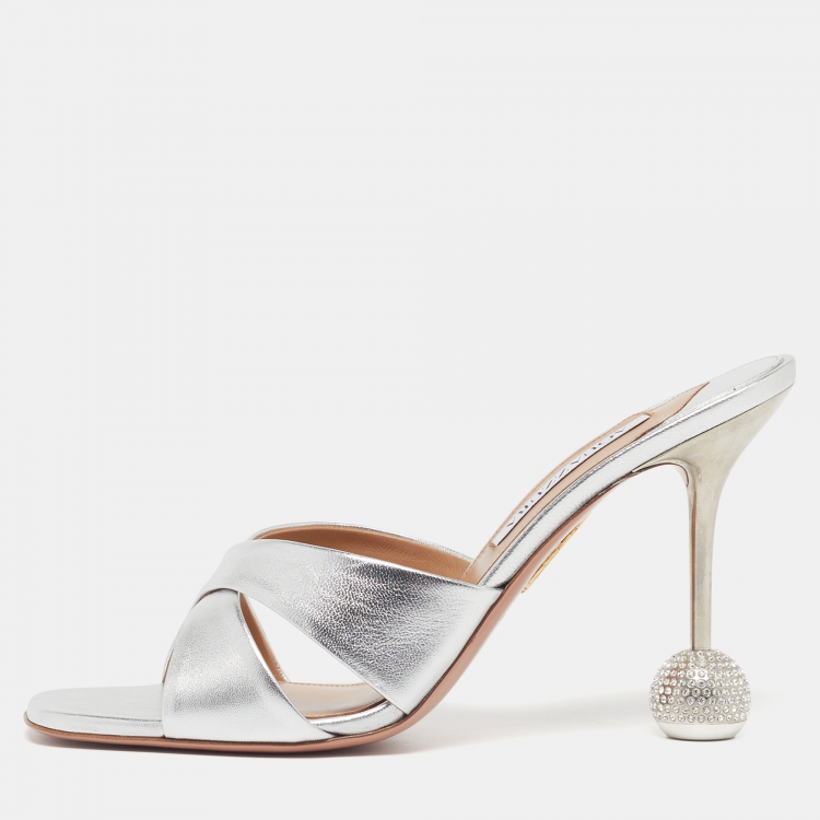 Pre Owned صندل أكوازورا تيس دارلينج جلد فضي مفتوح مقاس 41