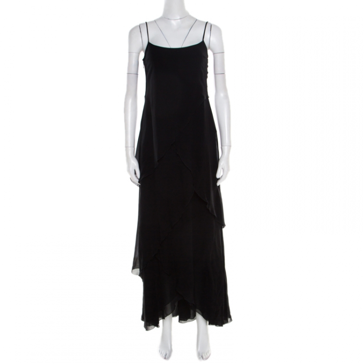 فستان أرماني كالزوني ماكسي بلا أكمام درابيه أسود S