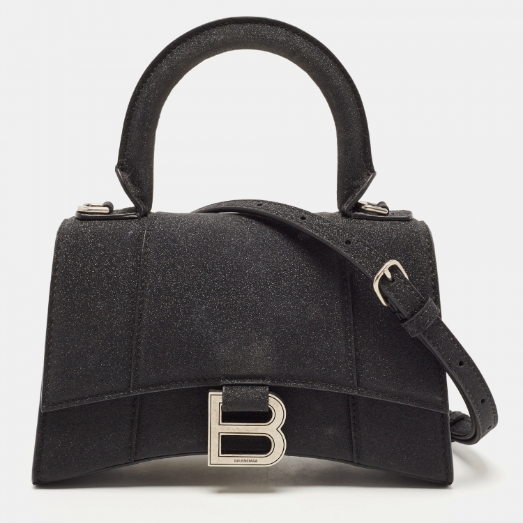Balenciaga Black Glitter Leather XS Hourglass Top Handle Bag