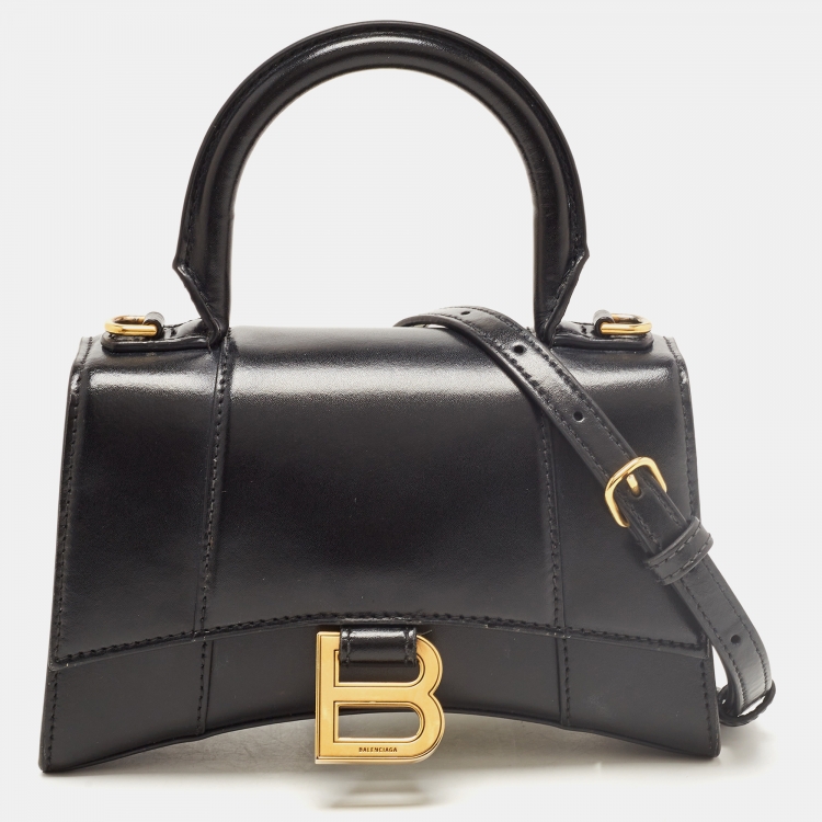 Balenciaga Black Leather XS Hourglass Top Handle Bag