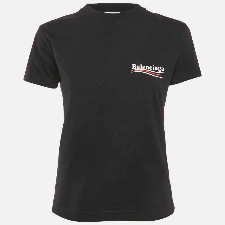 تي شيرت بالنسياغا أسود قطن بطبعة الشعار رقبة دائرية مقاس وسط