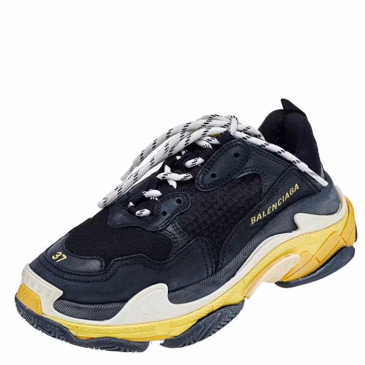 حذاء رياضي بالنسياغا تريبل أس كلير جلد و شبك أصفر/ أسود مقاس 37