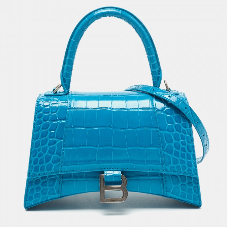 Balenciaga Blue Croc Embossed Leather Hourglass Top Handle Bag