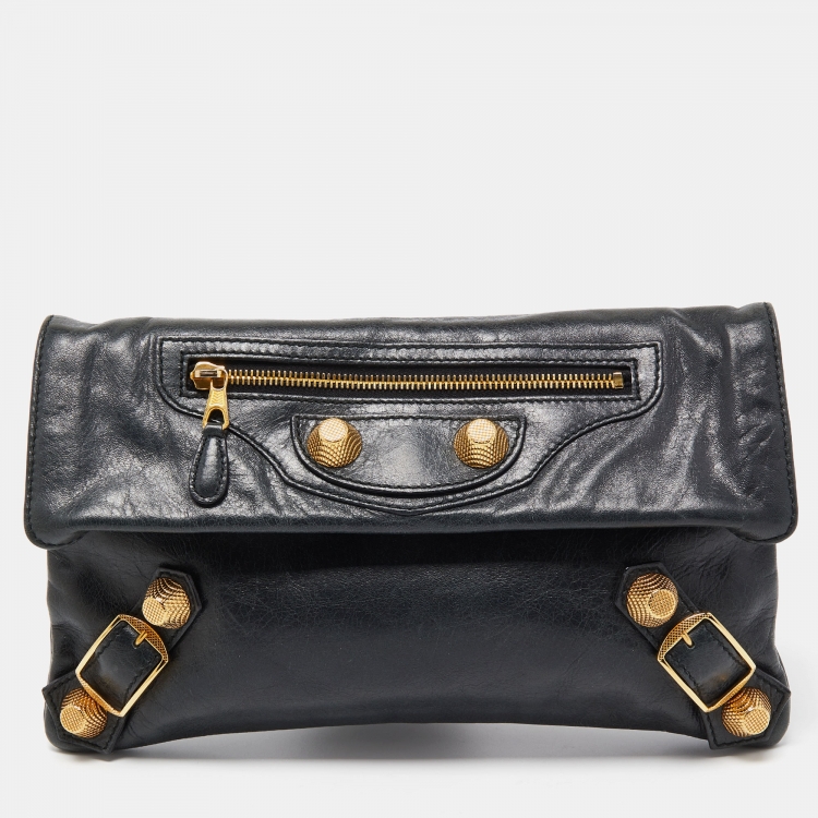 Balenciaga Dark Green Leather GGH Envelope Clutch