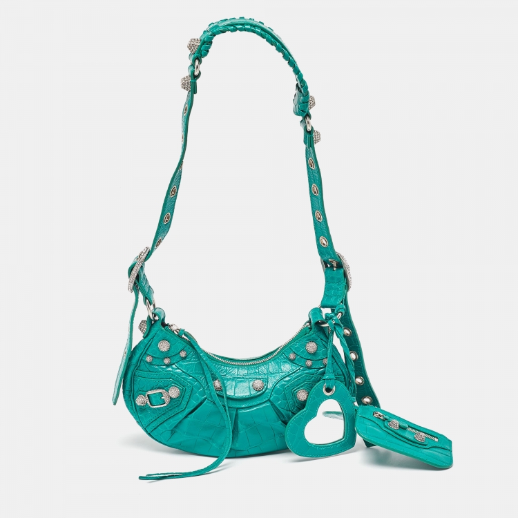 حقيبة كتف بالنسياغا اكس أس لو كاغولي جلد فضي بسلسلة