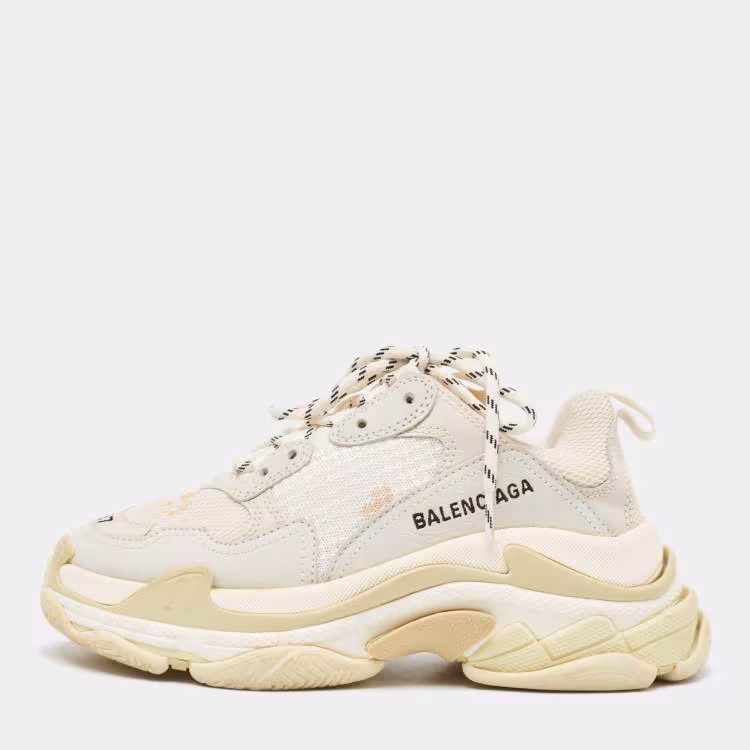 Pre Owned حذاء رياضي بالنسياغا تريبل أس شبك ونوبوك رمادي مقاس 37