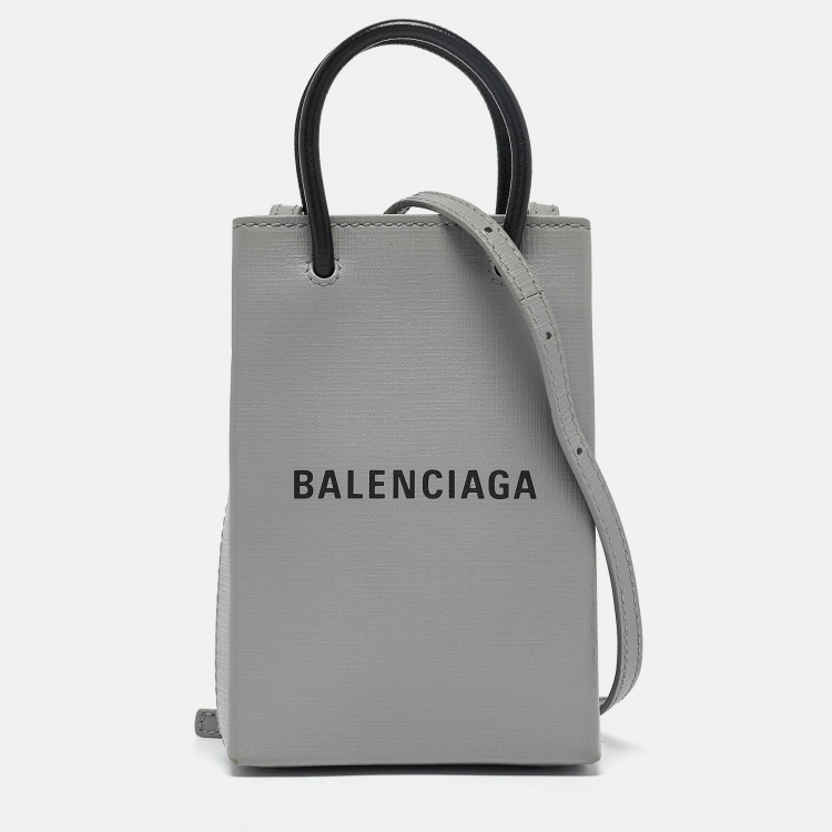 حقيبة كروس بالنسياغا حافظة هاتف شوبينغ جلد رصاصي