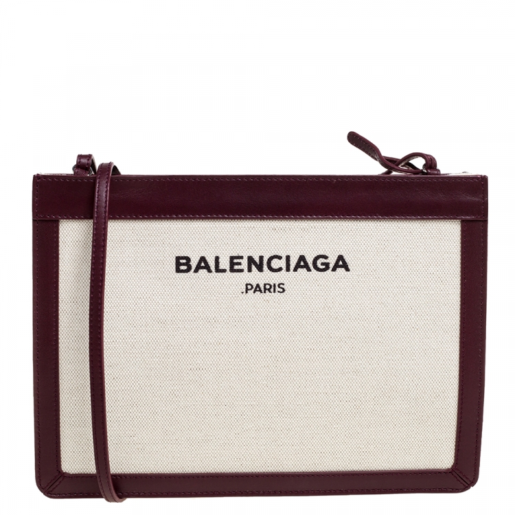 Balenciaga Maroon/Beige Canvas and Leather AJ Clutch