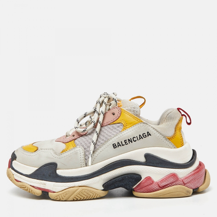 Balenciaga Multicolor Leather and Mesh Triple S Low Top Sneakers Size 35
