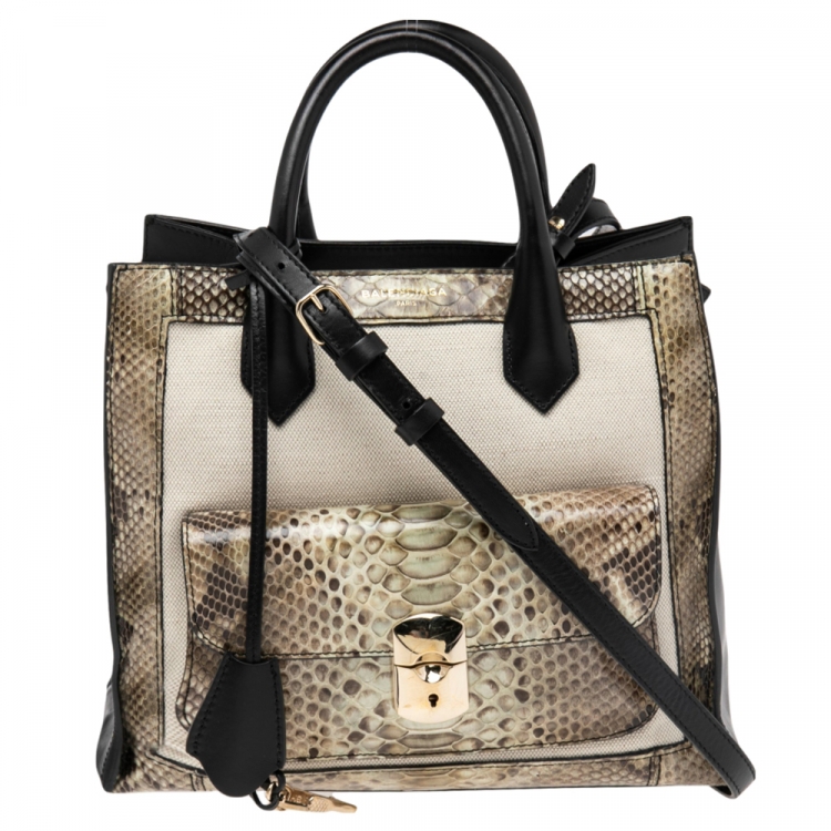 حقيبة يد توتس بالنسياغا أول أفترنون جلد وجلد ثعبان متعدد الألوان بقفل