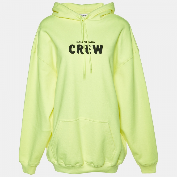 Balenciaga Neon Yellow Crew Print Cotton Oversized Hoodie XS