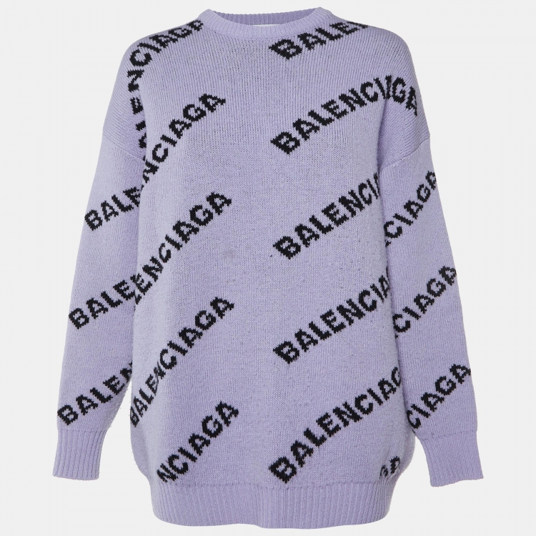 Balenciaga Purple Logo Wool Knit Oversized Sweater S
