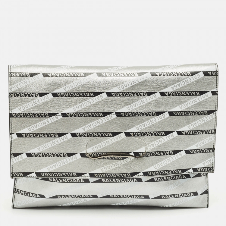 حقيبة بالنسياجا بلاستيك جلد مونوغرام فضي توت