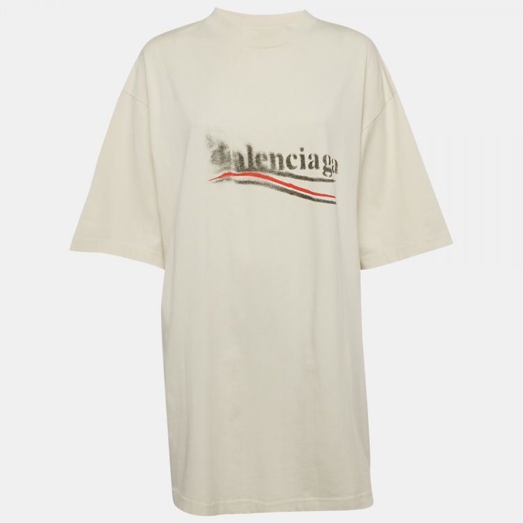 Balenciaga Unisex Cream Logo Print Crewneck T-Shirt L