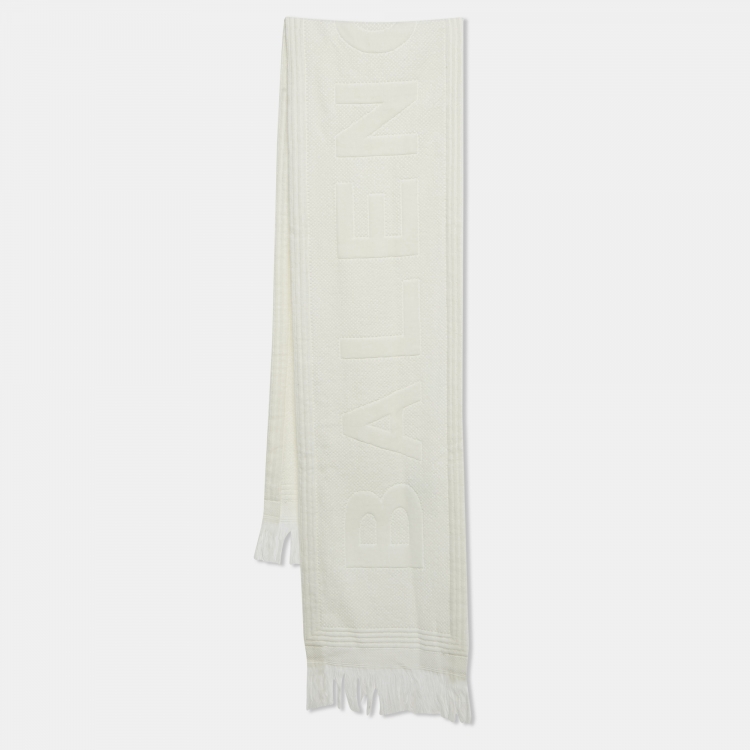 مملوكة مسبقًا وشاح بالنسياغا سبونجا تينيس قطن أبيض بتفاصيل الشعار