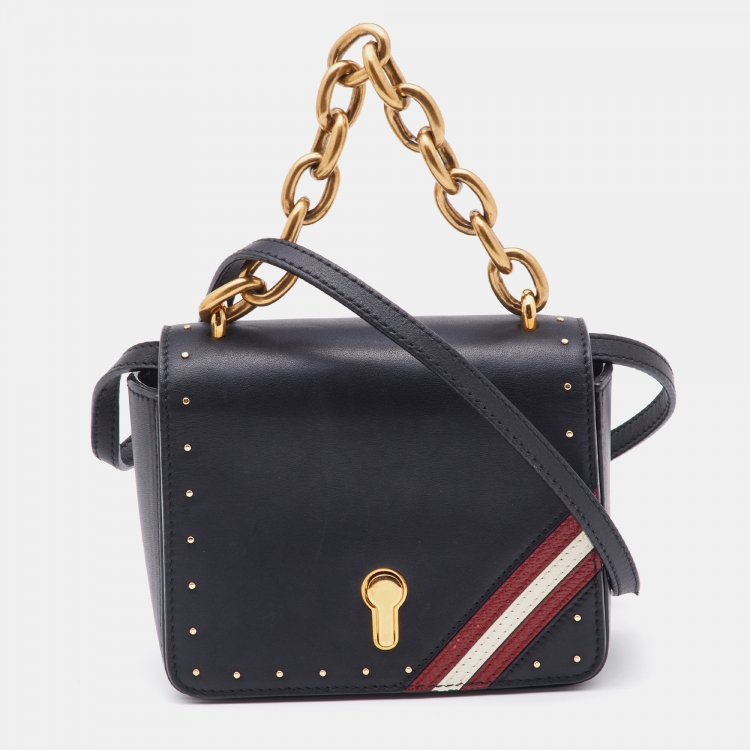 Bally Black Leather Flap Crossbody Bag