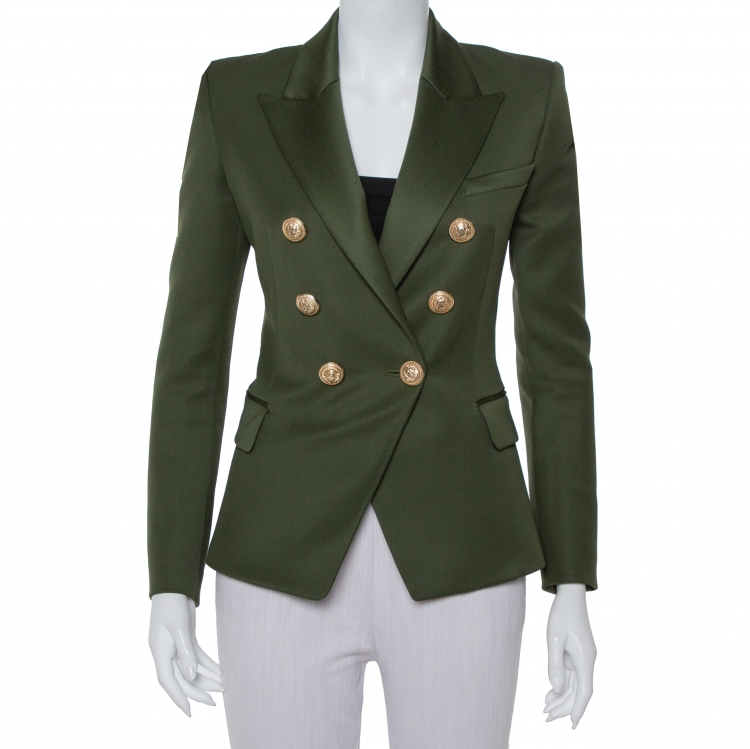 جاكيت بليزر بالمان صدرية مزدوجة صوف أخضر داكن مقاس صغير (سمول)