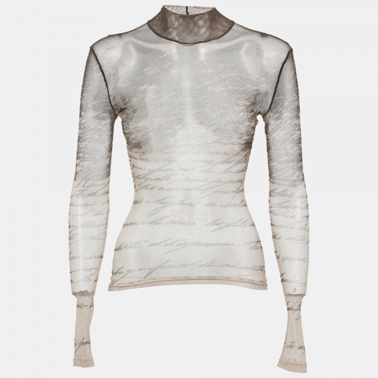 مملوكة مسبقًا توب بالمان مطبوع رسائل حب بيج شبكي مرن شفاف مقاس صغير