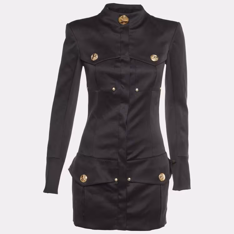 Pre Owned معطف بالمين صوف أسود بأزرار أمامية بطول متوسط مقاس صغير