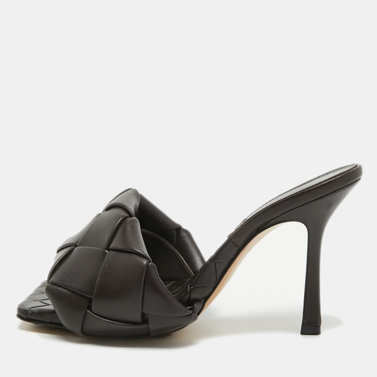 Bottega Dark Brown Quilted Leather Lido Slide Sandals Size 37