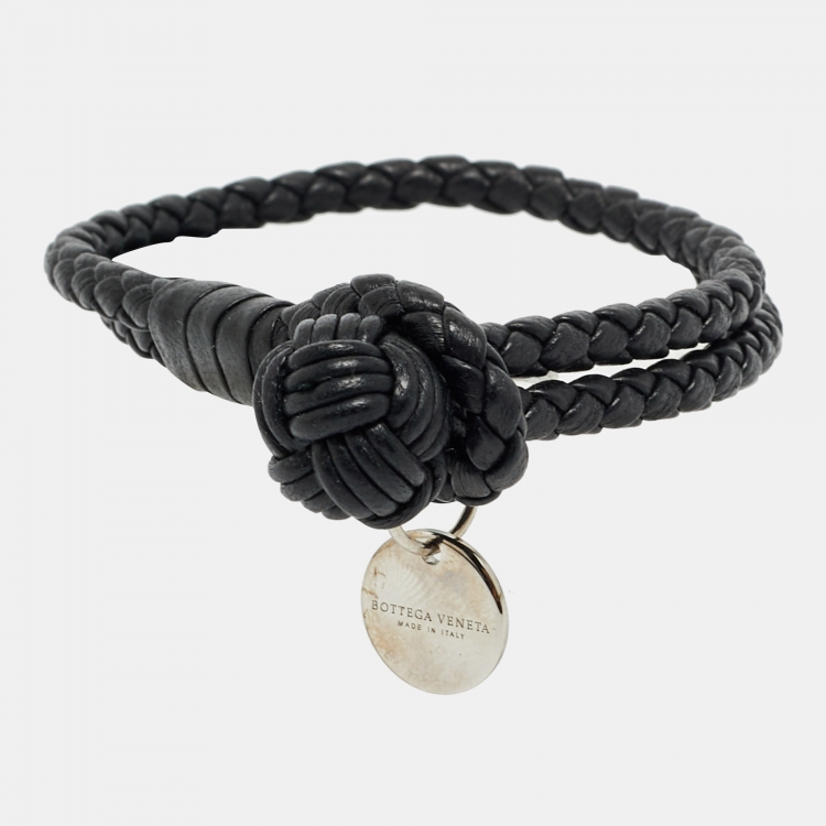 مملوكة مسبقًا سوار بوتيغا فينيتا إنتريشياتو جلدي أسود بلمسة فضية بعقدة