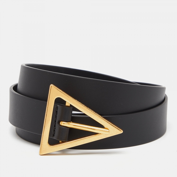 مملوكة مسبقًا Bottega Veneta Black Leather Triangle Slim Belt 100CM