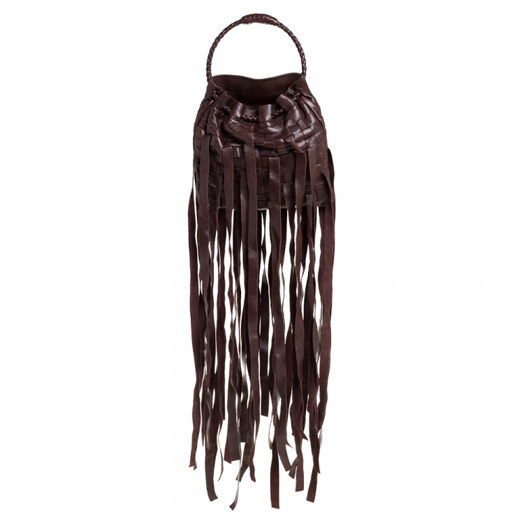 حقيبة صغيرة بوتيغا فينيتا جلد بني بشراشيب