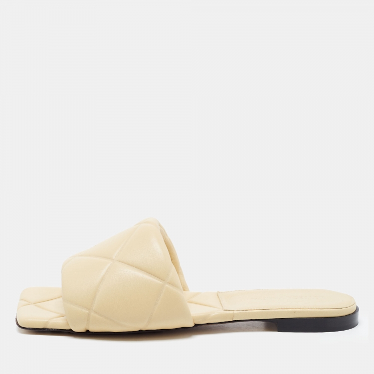 Bottega Veneta Cream Quilted Leather Lido Flat Slides Size 39.5