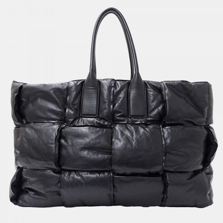 Pre Owned Bottega Veneta Maxi Intrecciato Tote Bag In Calfskin Squash Black