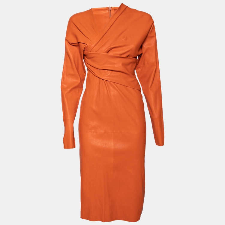 Pre Owned فستان بوتيغا فينيتا جلد ملتف برتقالي بطول الركبة مزين مقاس صغير ( سمول )
