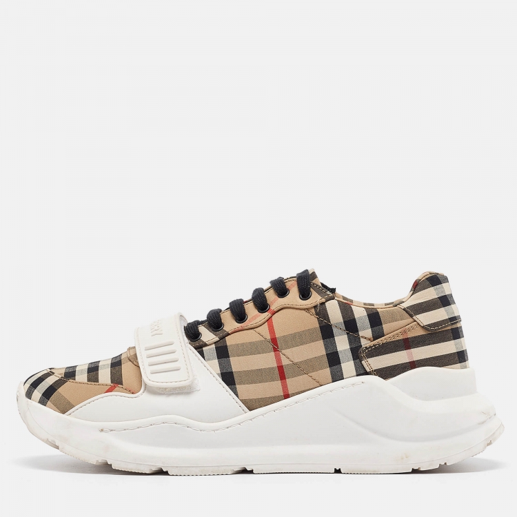 Burberry Beige/White House Check Fabric Regis Low Top Sneakers Size 39