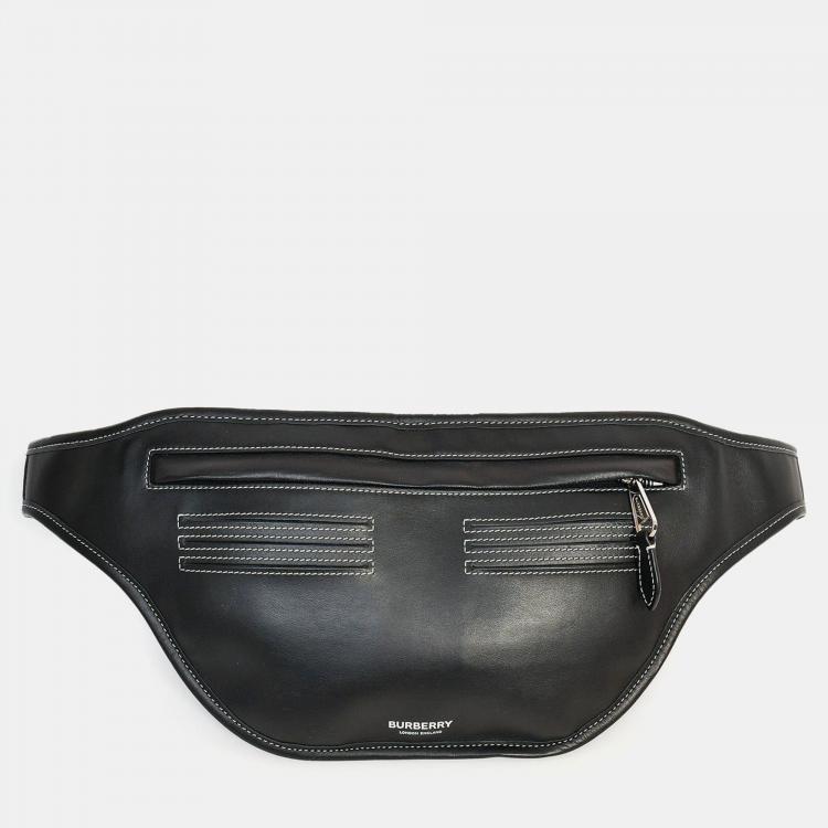 مملوكة مسبقًا حقيبة حزام بربري جلد أسود بغرز متباينة بيضاء 'بروميل'