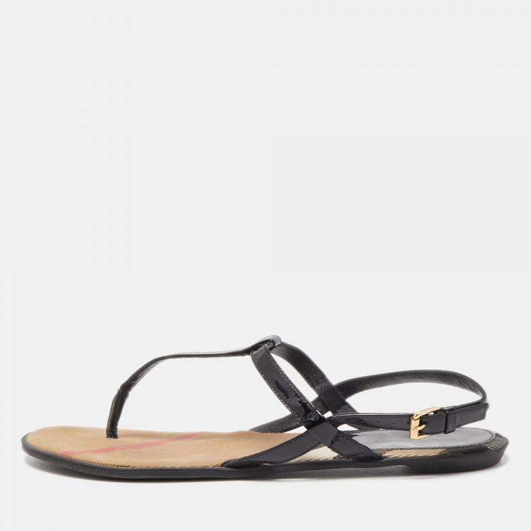Burberry Black Patent Leather Thong Flat Sandals Size 36
