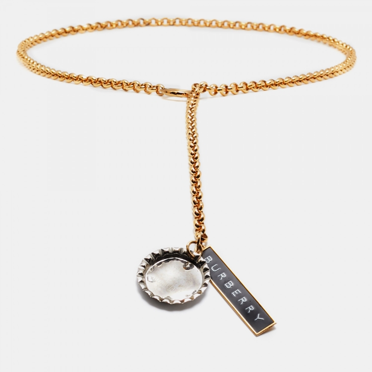 Burberry Bottle Cap Logo Tag Gold Tone Chain Belt