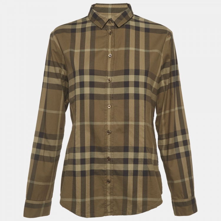 Pre Owned قميص بربري قطن كارو نوفا زيتوني مقاس كبير