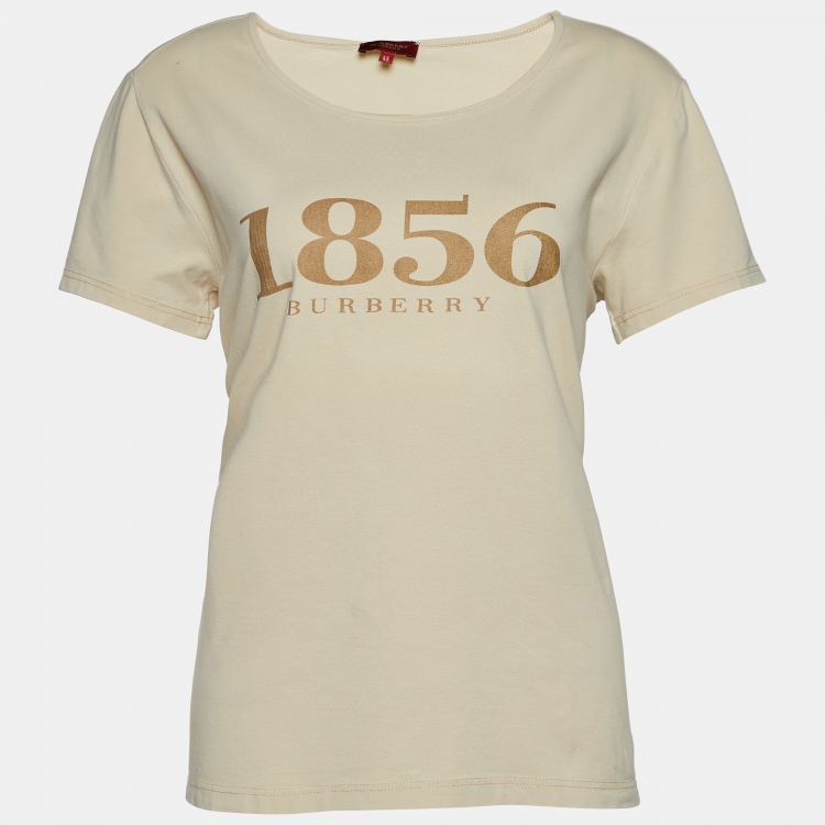Pre Owned تي شيرت بربري لندن ورلي قطن مرن مطبوع شعار الماركة بيج مقاس كبير (لارج)