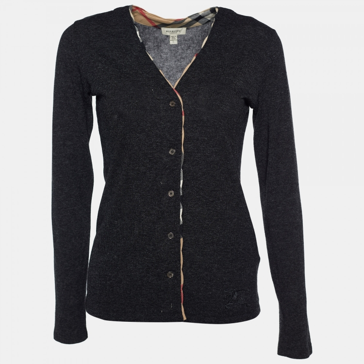 Pre Owned Burberry London Charcoal Grey Knit Button Front Cardigan L