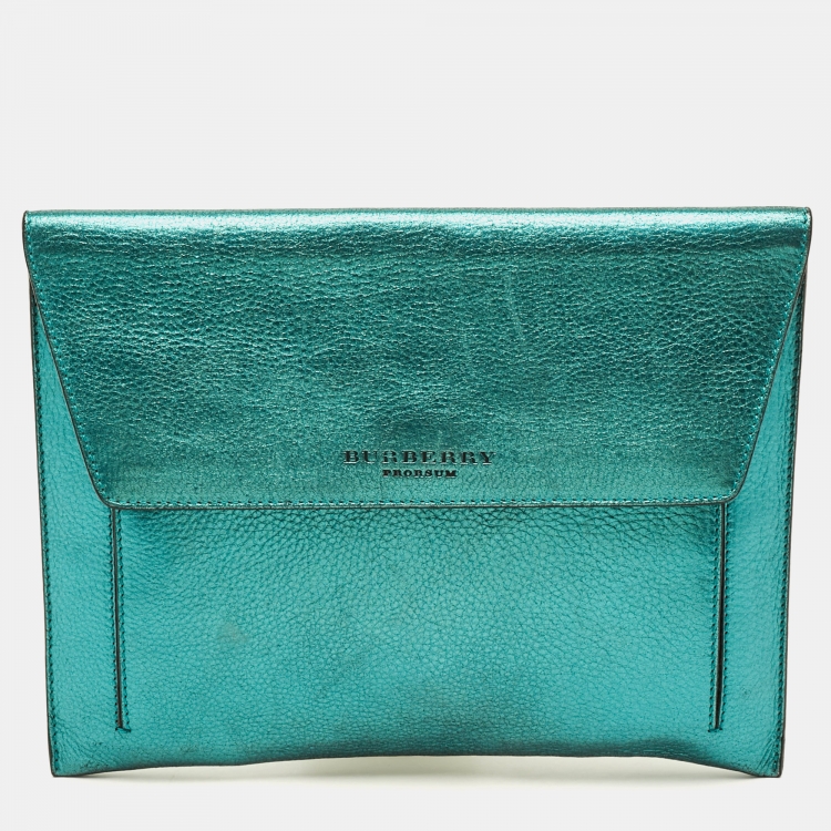 Pre Owned حقيبة كلتش بربري جلد معدني أخضر مغلف