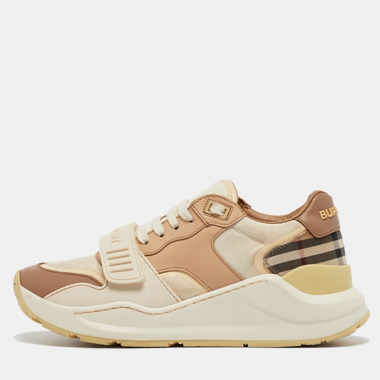 Pre Owned Burberry Multicolor Canvas and Leather Ramsey Sneakers Size 38